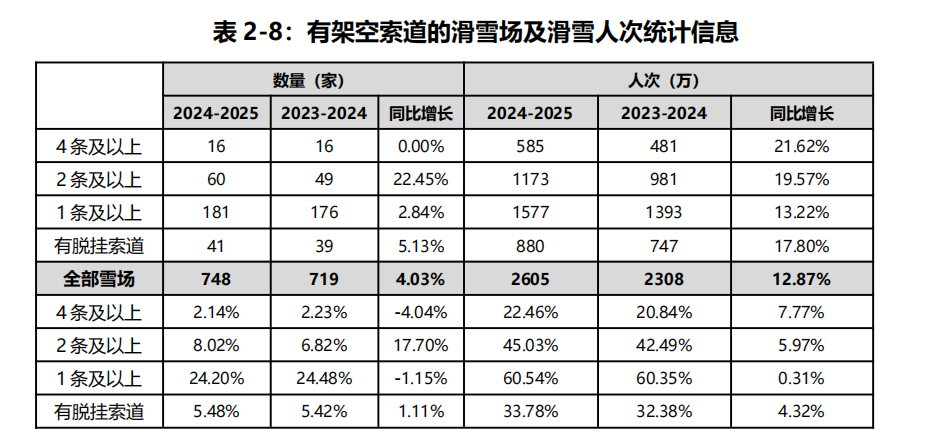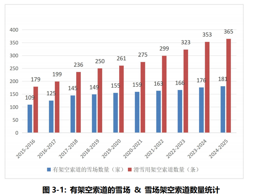 從數(shù)據(jù)來看,2024-2025雪季財年,全國新增12條滑雪架空索道,使得投入運營的架空索道總數(shù)達到365條,分布在181家雪場之中;同期新增魔毯170條,有效補充了初學者和兒童滑雪需求。值得注意的是,國內(nèi)脫掛式索道發(fā)展加快,國產(chǎn)索道數(shù)量已達67條,已遠遠超過進口索道數(shù)量。